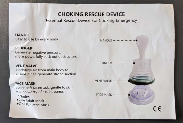 Le contenu du paquet de ces produits de contrefaçon est très différent de celui d'un vrai LifeVac. Vous ne recevez que deux tailles de masque (petit et grand). Avec LifeVac, vous recevez un troisième masque, dont la taille se situe entre les deux autres. C'est très important car il faut absolument un masque capable d'être parfaitement hermétique sur la bouche de la victime de l'étouffement.