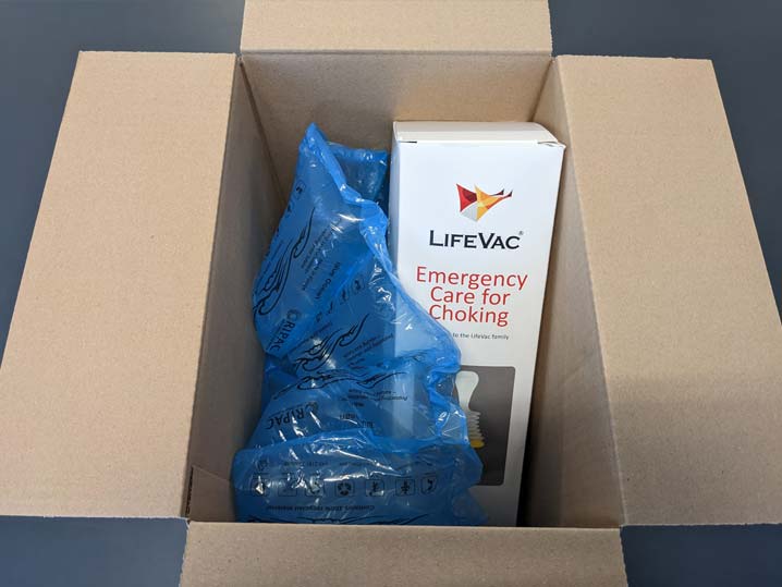 Chaque LifeVac est fabriqué en Europe avec des matériaux de première qualité et a été testé manuellement. LifeVac est conforme à toutes les réglementations locales et européennes et il a été médicalement prouvé comme étant le dispositif de dégagement des voies respiratoires le plus sûr, le plus efficace et le plus facile à utiliser au monde.